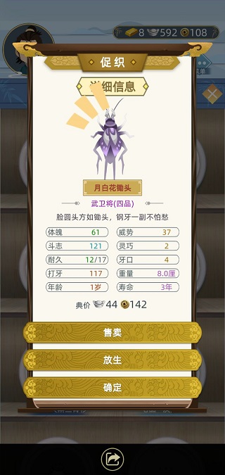 某些四品蛐蛐虽血量与牙口平平,但凭借极高威势,甚至可击败一品神虫。结论:威势才是制胜关键!