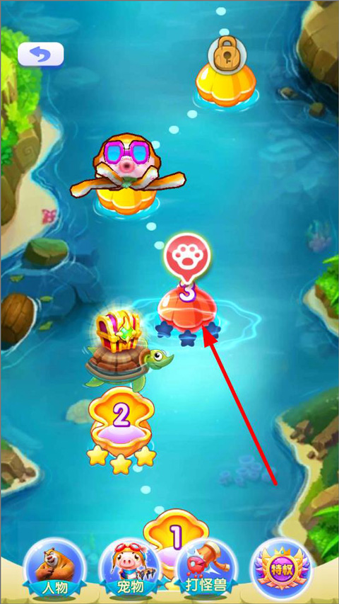 3、进入关卡列表,确认当前角色、宠物及敌人信息,选择并点击“第三关”开始挑战;