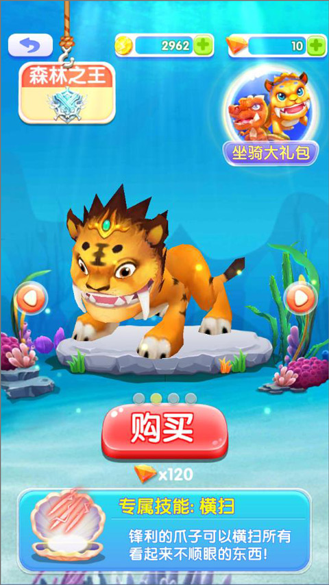2、技能特效全面进化:坐骑技能视觉表现华丽升级,招式威力强劲,助你高效闯关,积攒能量释放必杀技对抗巨型章鱼BOSS。