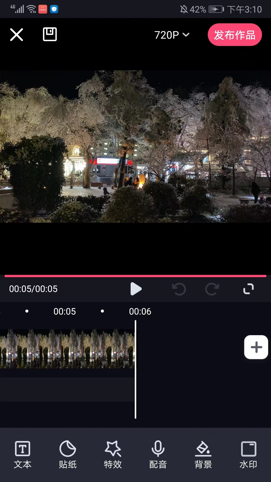 4、在导出前,可充分利用下方功能栏对视频进行深度美化,包括:文字添加、动态贴纸、视觉特效、语音配音、背景音乐与画面背景替换等。