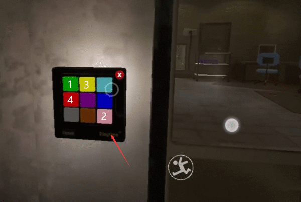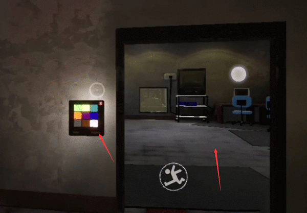 2、抵达密码门控制面板前,请严格按照“绿 → 粉 → 黄 → 红”的顺序依次按下对应颜色的按钮。