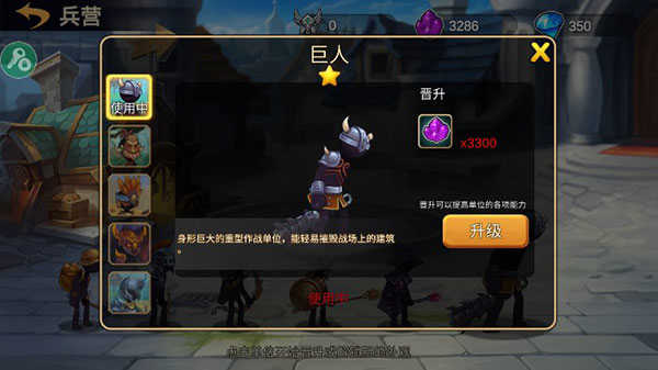 1. 巨人:攻击力强,防御力高,但攻击与移动速度较慢。