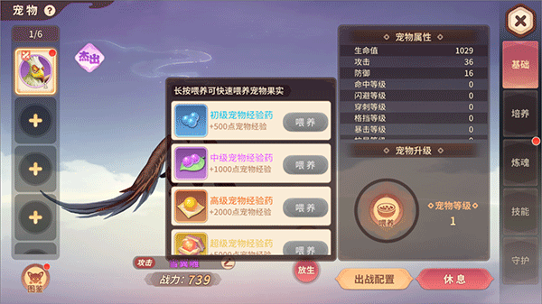 此外,宠物还可通过反哺机制为主人提供额外战力加成。使用守护石提升守护等级,即可将宠物的部分战斗力转化为角色属性增益。