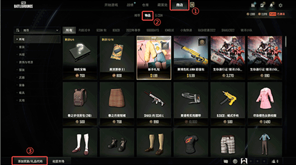 第一步:依次进入“商店” → “物品” → “添加奖励/礼物代码”。