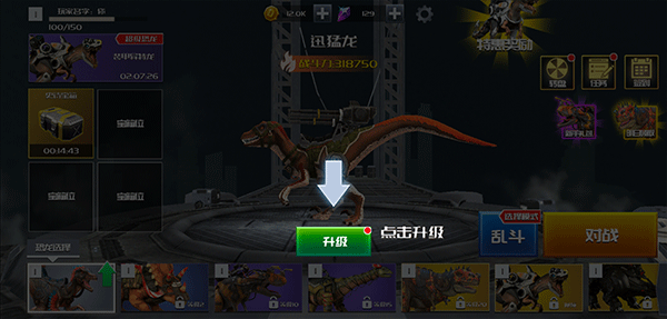 8. 在首页的恐龙选择界面,可随时更换出战单位,并对喜爱的恐龙进行培养与强化,大幅提升其作战能力。