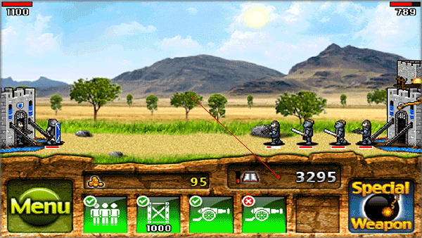 2、点击底部单位生成按钮召唤士兵投入战斗;通过消灭敌人积累资源,用于后续强化。