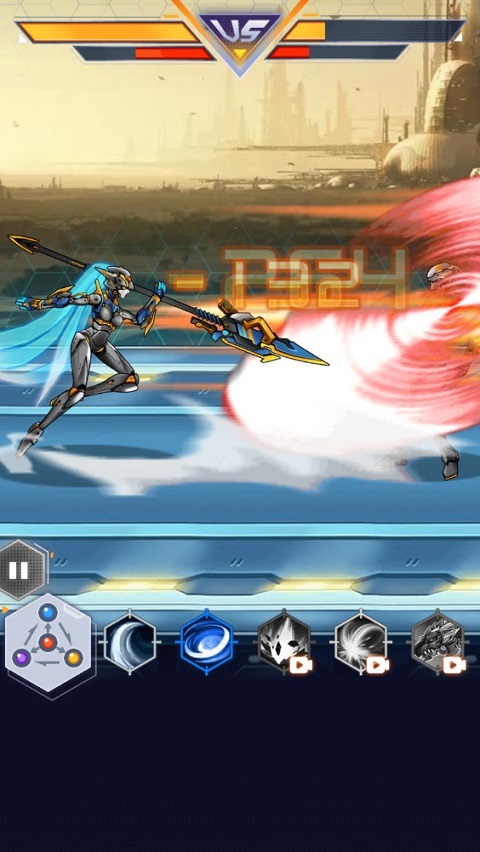 4、战斗采用回合制机制,在倒计时内手动选择并释放技能。需注意:敌人会进化至究极形态,玩家亦可激活自身机甲的究极变身,以更强姿态迎战强敌。