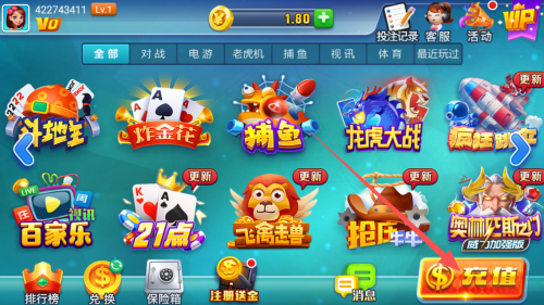 充值操作便捷直观:进入游戏大厅后,点击右上角【充值】按钮即可开启流程。