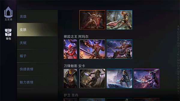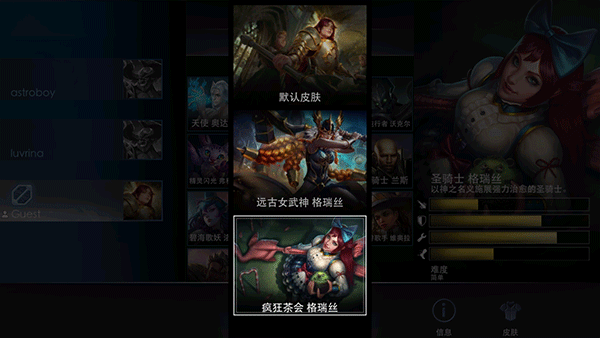 3、然后进入到选角界面,选择好角色好可以选择对应的皮肤,不满意还可以更换等等